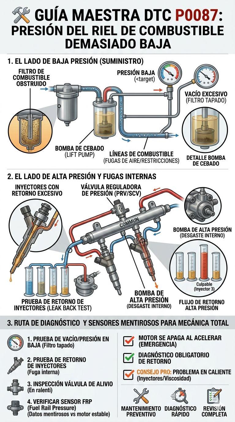 El código P0087 es el punto de partida para una investigación profunda del sistema de comb...