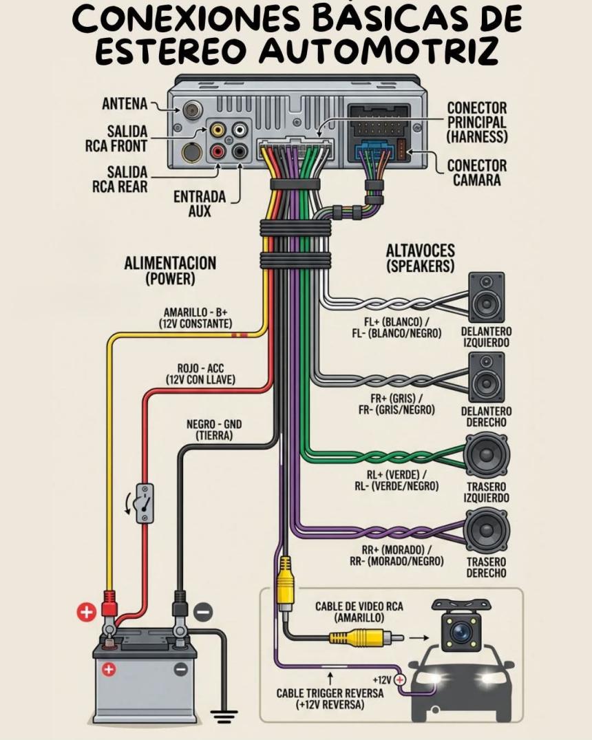 Conexiones básica de un estéreo automotriz